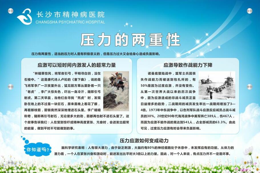 压力具有两重性。脑科学研究表明:人的潜力是巨大的,由于缺乏刺激,大脑约80%的神经细胞处于休息中,未发挥应有的功能。从体力的潜力看,一个人在紧张兴奋和激动时,能迸发出比平时大3倍以上的力量。因此适当的压力对人是有积极意义的,但是压力过大也会给身心造成负面影响。