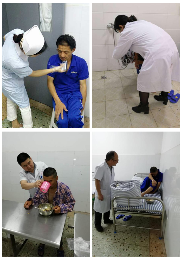 “三无”流浪短期疗养病房的工作表面上看起来似乎很轻松,其实脏、累、苦只有亲身经历过了才会知道。他们刚进病房时不仅身上又脏又臭,而且相当多的病人根本不配合安检、洗澡、理发、进食、治疗等方面,医护人员在为他们洗澡、剪指甲的过程中常被抓破手、咬伤;在为他们喂饭、治疗的过程中被打、吐口水是常态。如:一名护理员在劝病人治疗时,本来安静的病人突然挥过来就是两拳,并掐住了护理员的脖子,危急时刻护士赶紧呼救,最后在大家协同下控制了病人,但我们的当班护理员却满身是血、鼻青脸肿,病人却完好无损,因为我们的护理员宁愿自己受伤也要保护好病人。还有一次一个类似“癫痫”的病人被送入病房,入病房当天就屡发类似“癫痫”的症状,输液、监测生命体征、观察病情,病人呕吐一脸一身一地,看到病人很紧张,我们边安慰病人,边端来温水为病人擦身、更衣,不知多少次被病人的呕吐物、口水、痰液喷溅过,但是我们的医护人员从没有因为脏和累而放下手中的工作,而是毫无怨言,总是事后默默的清洗自己的衣物。