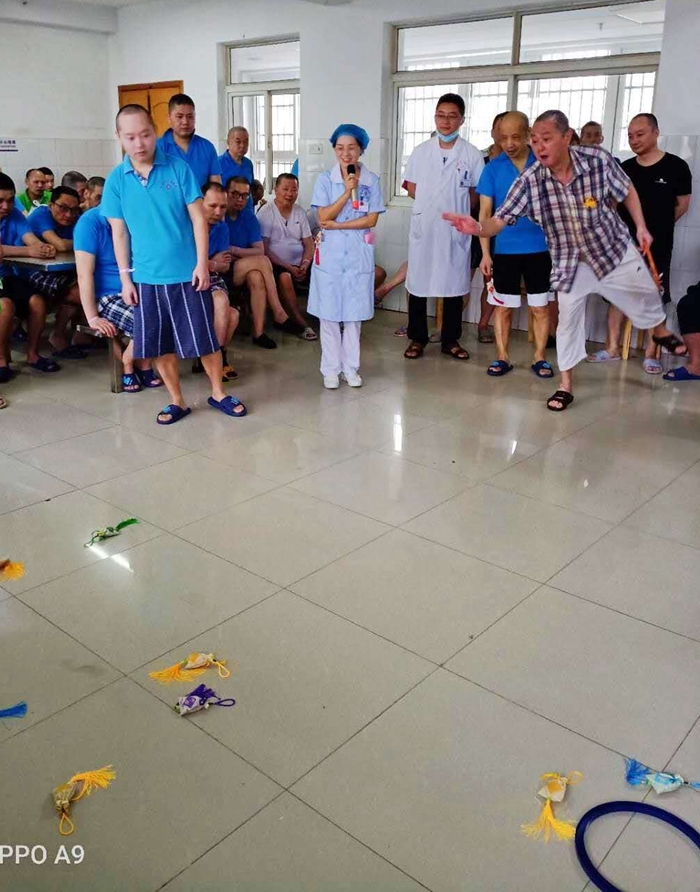 今年因新冠肺炎阻挡了家属的探视,为了给患者有家一样的感觉三病室的工作人员费尽了心思,带领患者做香包、画彩蛋、钓粽子、端午知识竞答。