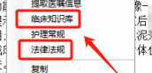 临床指南、技术规范:打开电子病历,进入编辑状态,右键选择“临床知识库”“法律法规”。