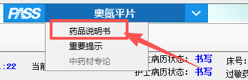 用药指南:开药品医嘱时,合理用药提示窗口单击药品名,选择药品说明书。